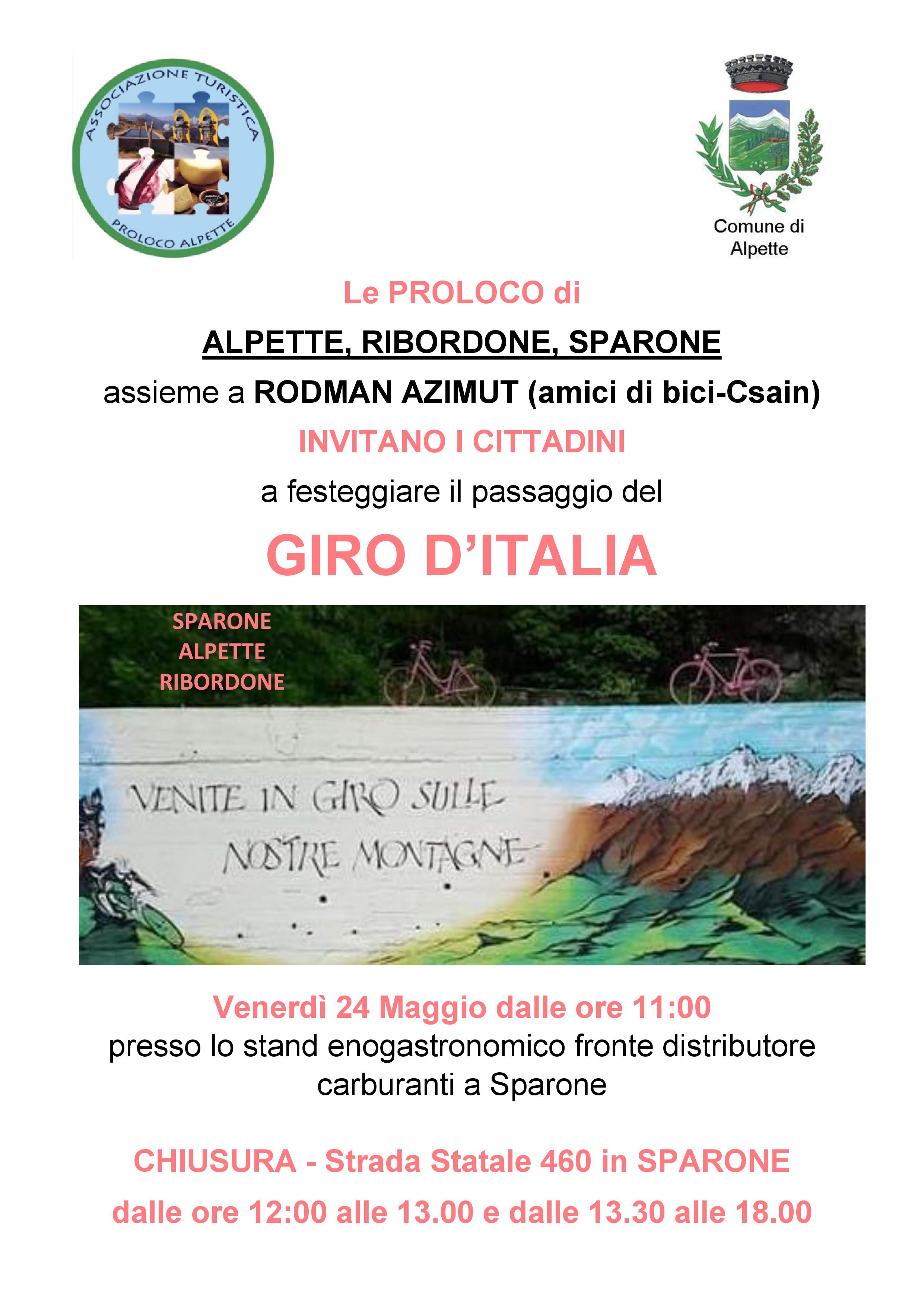 INVITANO I CITTADINI a festeggiare il passaggio del GIRO D’ITALIA