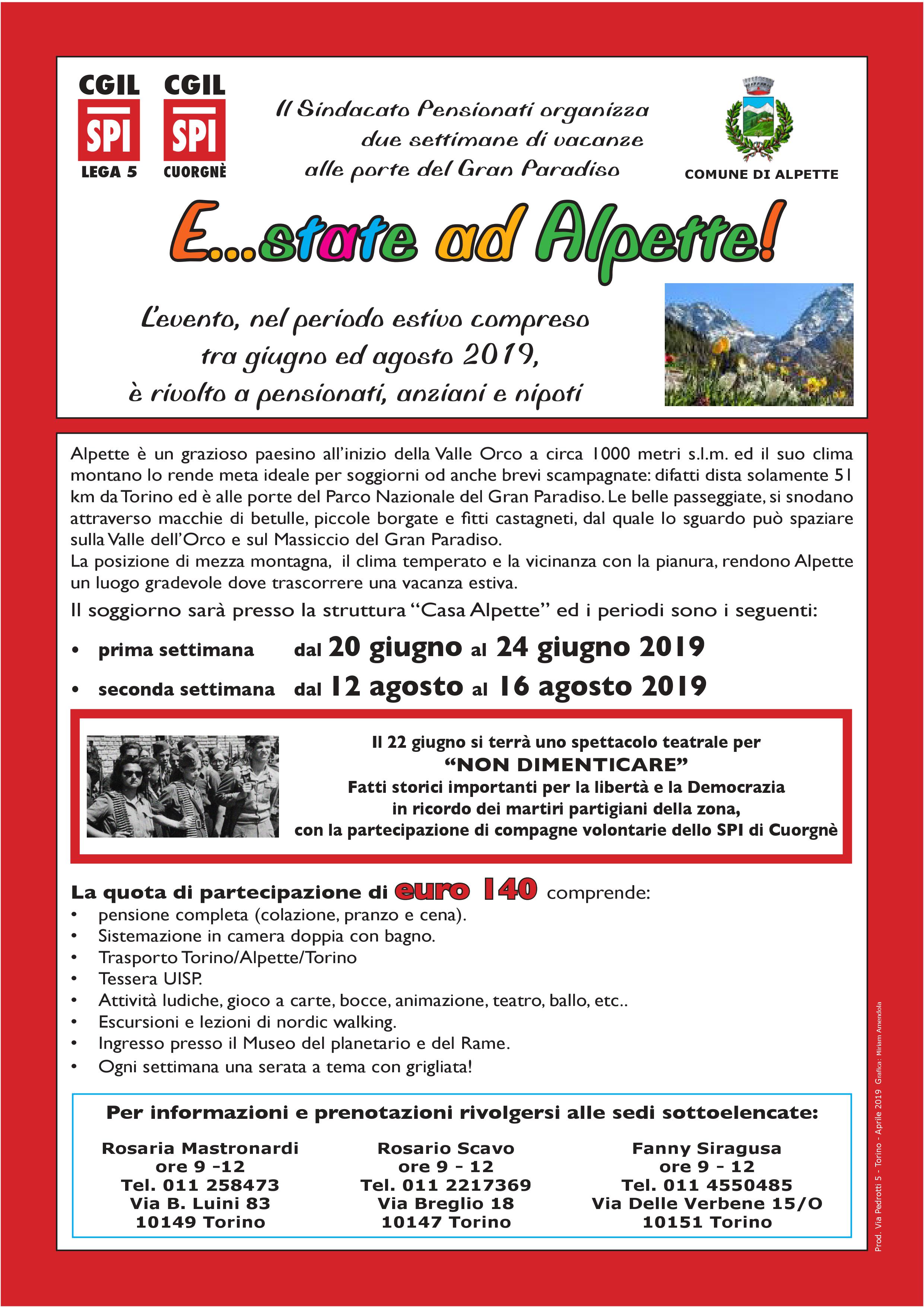 Il soggiorno sarà presso la struttura “Casa Alpette” ed i periodi sono i seguenti: