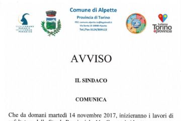Leggi tuttoAVVISO ASFALTATURA STRADA PROVINCIALE 44 CUORGNE' ALPETTE