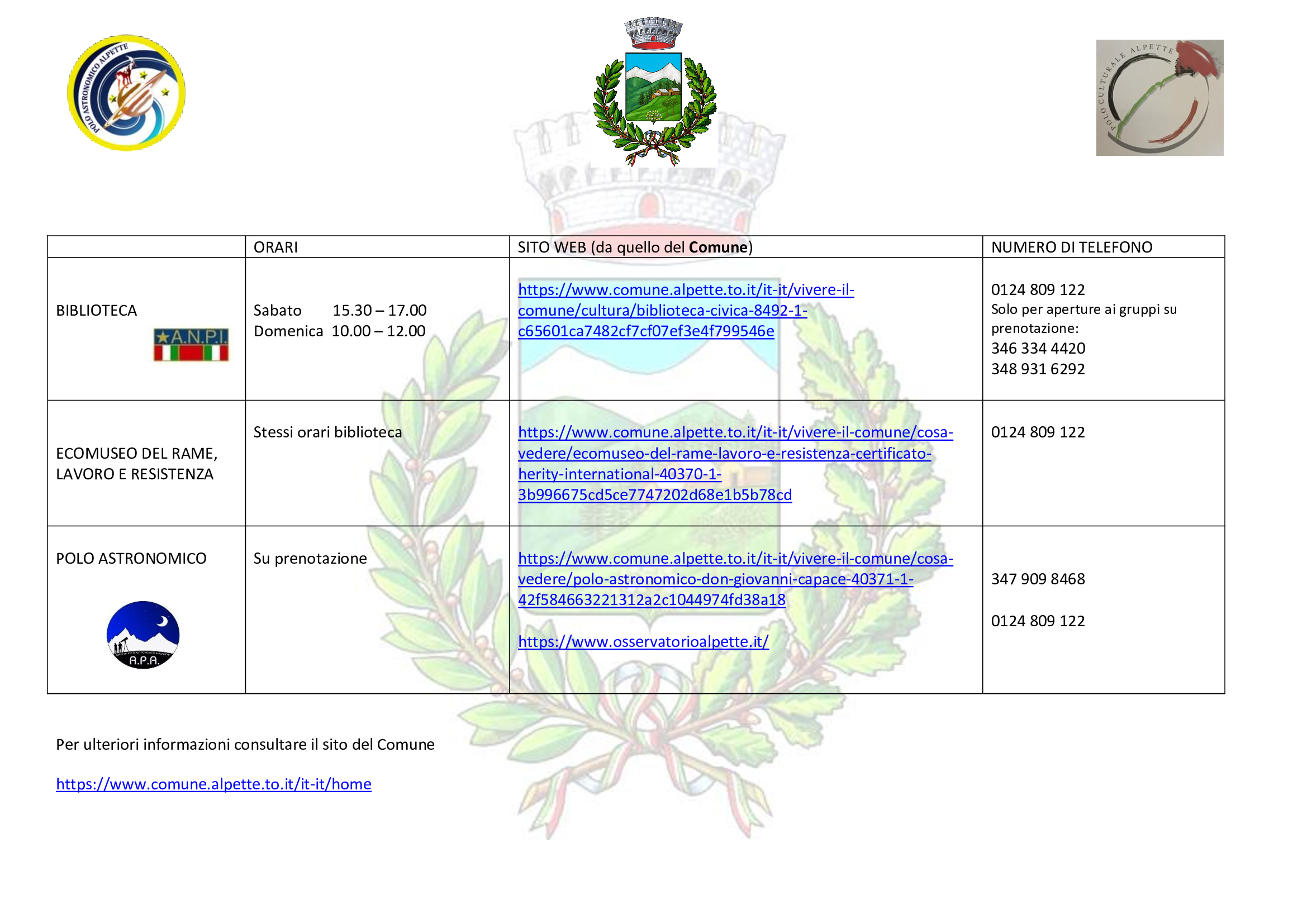 | Telefono | 347.9098468 - 0124.809122 selezione 5 |