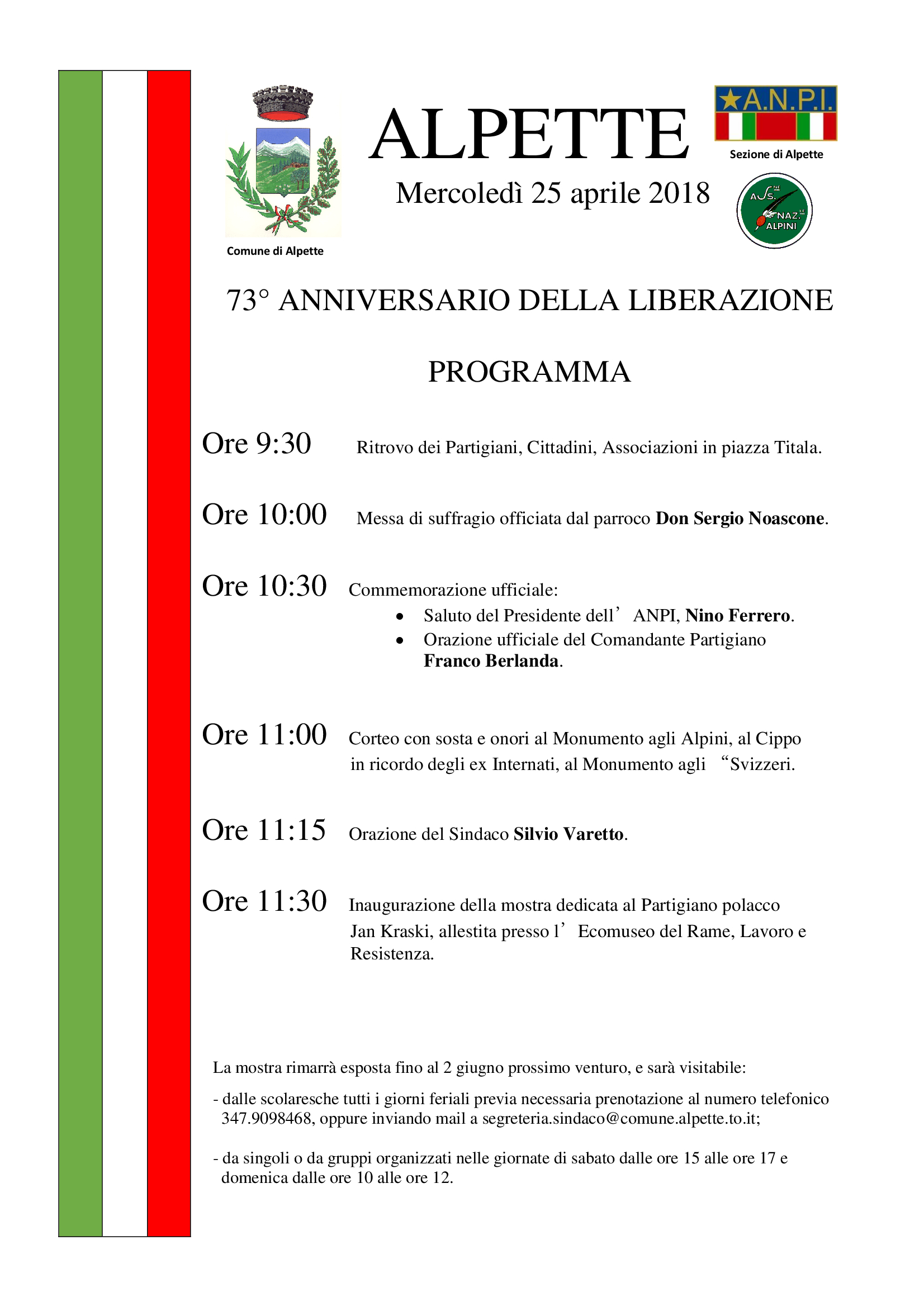 Ore 11.30 - Inaugurazione della mostra dedicata al Partigiano polacco Jan Kraski, allestita presso l'Ecomuseo del Rame, Lavoro e Resistenza.