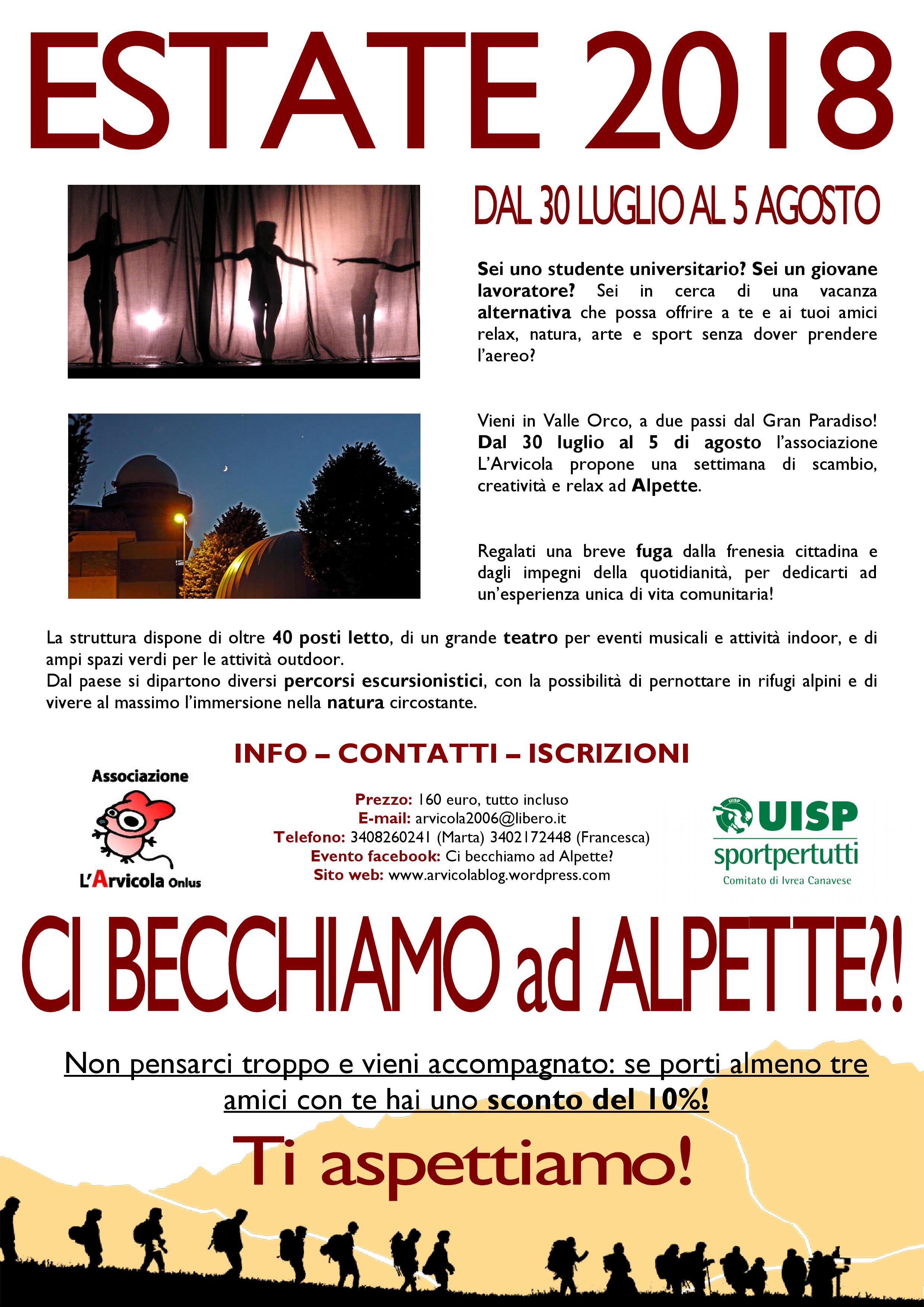 Dal 30 luglio al 5 di agosto l’associazione L’Arvicola propone una settimana di scambio, creatività e relax ad Alpette.