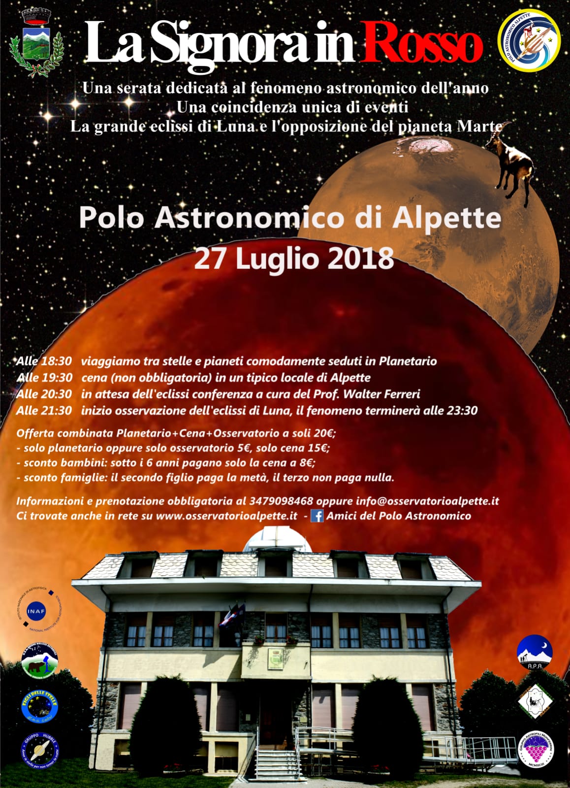 Ore 20.30 - In attesa dell'eclissi conferenza a cura del Prof. Walter Ferreri