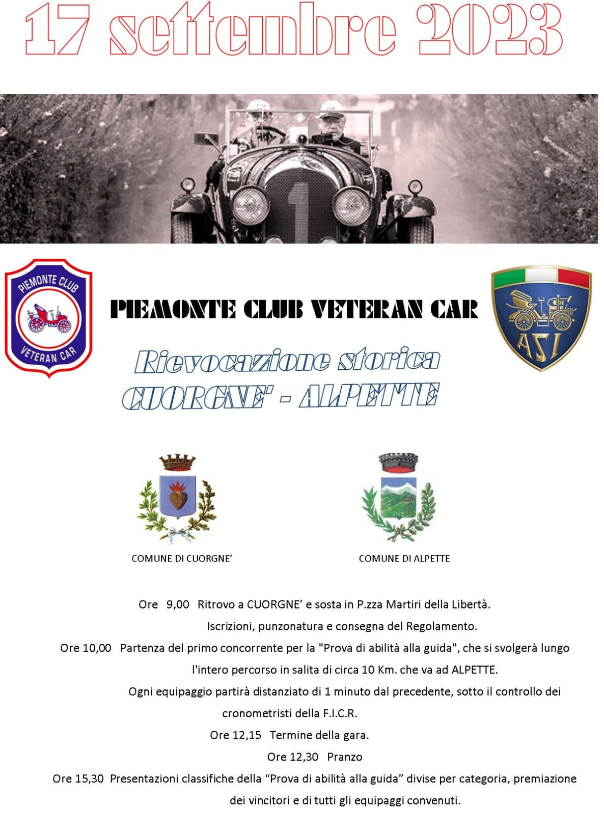 Il Piemonte Veteran Car, con il patrocinio del Comune di Cuorgnè e la collaborazione del Comune di Alpette, ha organizzato anche quest’anno questa celebre manifestazione turistica per auto e motociclette d'epoca e storiche costruite entro il 2003, con annessa la tradizionale “Prova di abilità alla guida” .