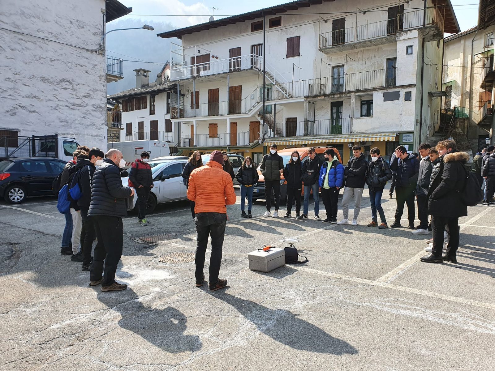 I professori del Politecnico di Torino e il Presidente dell'Ordine dei Geometri illustrano agli Studenti Geometri e Periti Agrari il progetto di Abitare Sostenibile della montagna, in particolare Alpette