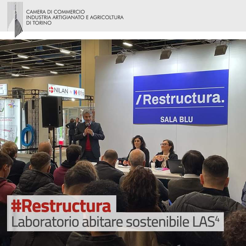 Il 17 Novembre 2022 a Restructura, il salone su edilizia, ristrutturazione e restauro a Lingotto Fiere è stata presentata la nuova edizione del Laboratorio Abitare Sostenibile, Sicuro Smart e con attenzione agli aspetti Sanitari: LAS4. Con Andrea Talaia hanno parlato Elena Cappai dell'Ufficio Scolastico Regionale, Rossella Seren Rosso dell'IIS Erasmo da Rotterdam, i numerosi studenti coinvolti.